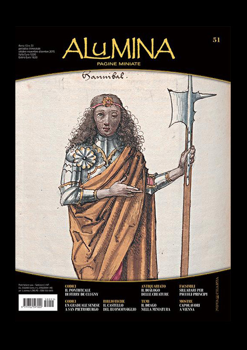 ALUMINA Pagine Miniate, dal 2003 propone articoli su antichi codici, biblioteche, sull’arte della miniatura, accompagnati da immagini di rara bellezza stampate con il quinto colore in oro.