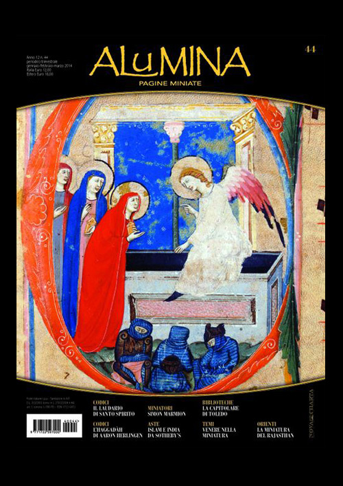 ALUMINA Pagine Miniate, dal 2003 propone articoli su antichi codici, biblioteche, sull’arte della miniatura, accompagnati da immagini di rara bellezza stampate con il quinto colore in oro.