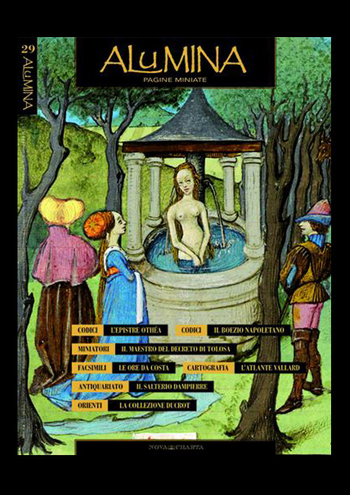 ALUMINA Pagine Miniate, dal 2003 propone articoli su antichi codici, biblioteche, sull’arte della miniatura, accompagnati da immagini di rara bellezza stampate con il quinto colore in oro.