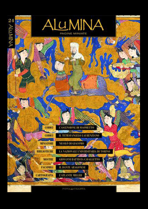 ALUMINA Pagine Miniate, dal 2003 propone articoli su antichi codici, biblioteche, sull’arte della miniatura, accompagnati da immagini di rara bellezza stampate con il quinto colore in oro.