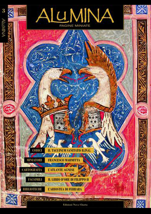 ALUMINA Pagine Miniate, dal 2003 propone articoli su antichi codici, biblioteche, sull’arte della miniatura, accompagnati da immagini di rara bellezza stampate con il quinto colore in oro.