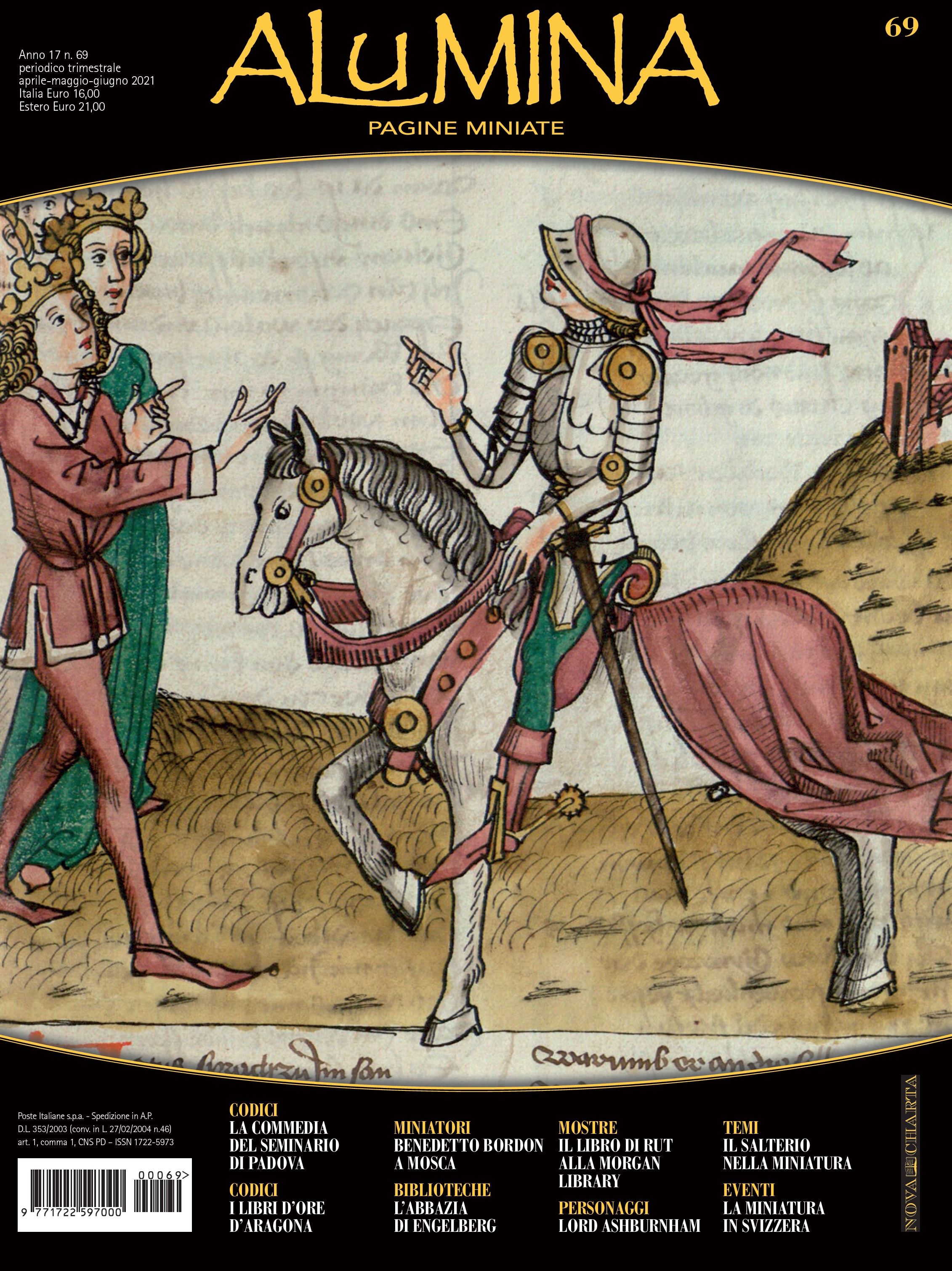Alumina è la prima rivista italiana dedicata interamente al mondo dei codici miniati, ai loro autori e alle biblioteche che li custodiscono.